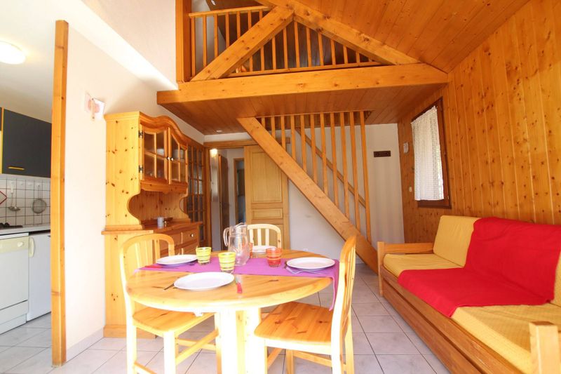 Il est composé d'une entrée ou vous pourrez vous déchaussez, d'une chambre avec 1 lit en 160 cm, 2 chevets et une coiffeuse, d'un coin montagne avec des lits superposés et une penderie ainsi que d'un séjour avec canapé convertible en 140 cm, une télévision et un balcon exposition est. Le coin cuisine possède deux plaques vitrocéramiques, un lave-vaisselle, un mini-four, un micro-ondes et un réfrigérateur.