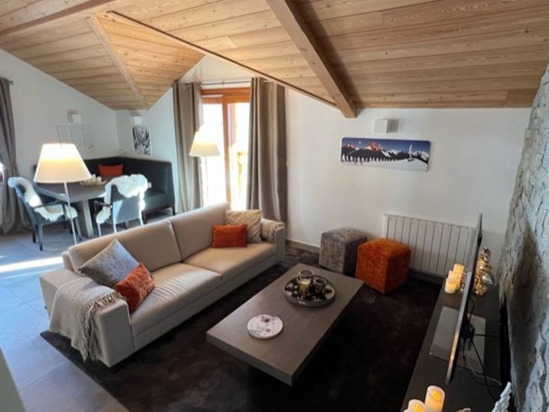 - d'un séjour avec un canapé type rapido et une télévision donnant sur un balcon plein sud avec table et chaises et un magnifique panorama de la station,