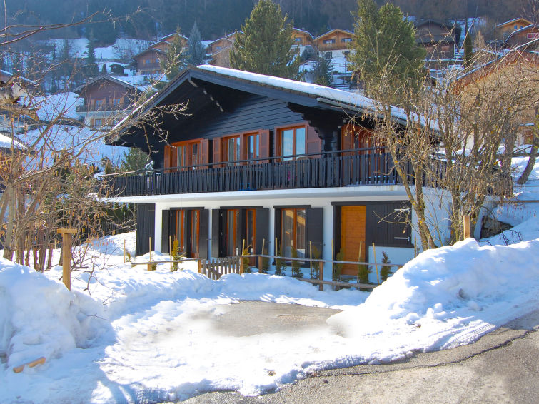 Pattier Haut: Chalet "Le Hibou". En bordure de la localité, à 1.2 km du centre de (600m by foot), situation tranquille. A usage privé: jardin avec pelouse. Infrastructures de la Maison: lave-linge. Accès en voiture jusqu'à la maison par un chemin raide. En hiver, merci de prévoir des chaînes. Place de parking. Terrain de golf 18 km, remontées mécaniques 1.6 km. Arrêt du ski-bus 100 m. Veuillez noter: ski-bus gratuit.