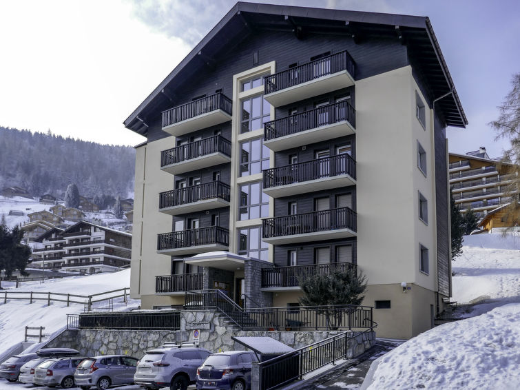 Petite résidence "Arnica". Au centre, excellente situation: centrale mais tranquille. En commun: piscine couverte (12 x 6 m, profondeur 135 - 175 cm, disponibilité saisonnière: 16.Dec. - 01.Nov.). Tennis (en sus). Infrastructures de la Maison: sauna (en sus). Ascenseur, chauffage central, lave-linge (en sus), sèche-linge (en commun, en sus). Place de parking (nombre de places limité). Magasins 50 m, restaurant 100 m, boulangerie 50 m, arrêt de bus "Haute-Nendaz, station/poste" 300 m, piscine 1.2 km. Terrain de golf 18 km, télécabine 450 m. Jeux pour enfants 800 m. Les domaines skiables de renommée sont facilement accessibles: Tracouet 4 Vallées 450 m. Région de randonnées: Bisse du Milieu 20 m. Veuillez noter: ski-bus gratuit. Tennis en supplément.