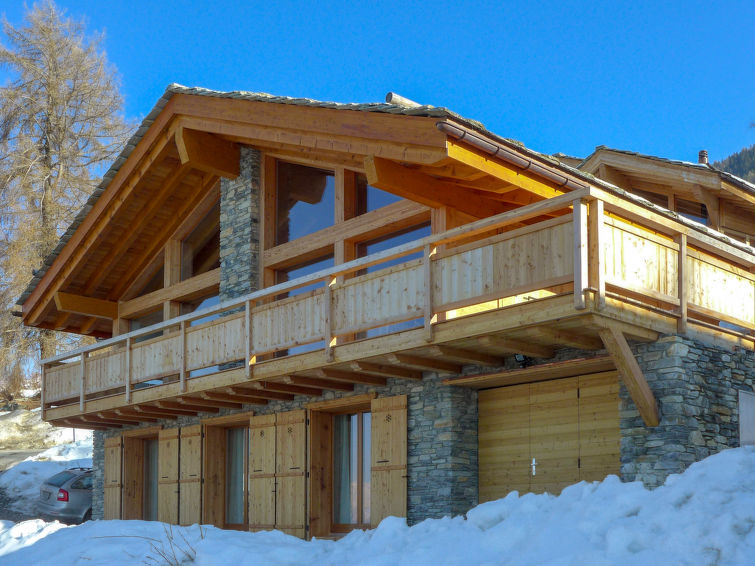 "Zora", chalet 4 pièces 90 m2 sur 2 niveaux. Séjour/salle à manger avec cheminée, TV (câblée) et DVD. Sortie sur le balcon. Cuisine ouverte (four, lave-vaisselle, cafetière électrique, Capsules pour machine à café (Delizio) (NON INCLUSES), service à fondue (fondue au fromage)). WC séparé. À l'étage inférieur: 1 chambre avec 1 grand-lit. 1 chambre avec 2 lits. 1 chambre avec 1 x 2 lits superposés (1 x 90 cm) (1 x 120 cm). Bain/WC. Balcon, situation nord, 2 petites terrasses, situation sud et situation ouest. Très belle vue sur la vallée. A disposition: Internet (Connexion WIFI, gratuit). Garage. Veuillez noter: logement pour non fumeurs.