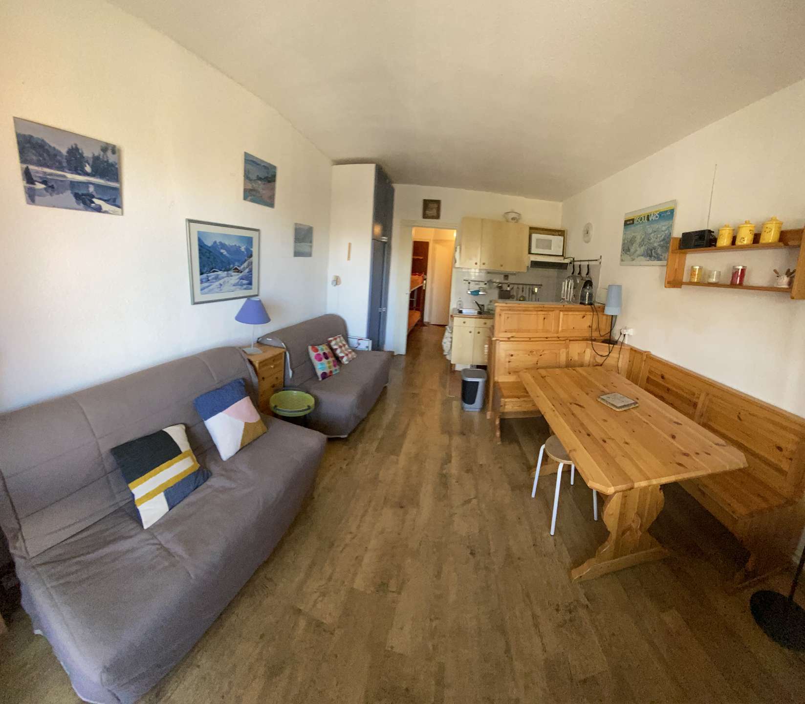 Situé à l’entrée de la station, l’appartement se compose d’un séjour équipé d’un canapé convertible deux places, d’un coin cabine dans l’entrée avec deux lits superposés, d’une cuisine équipée, d’une salle de bain ainsi que d’un WC indépendant.