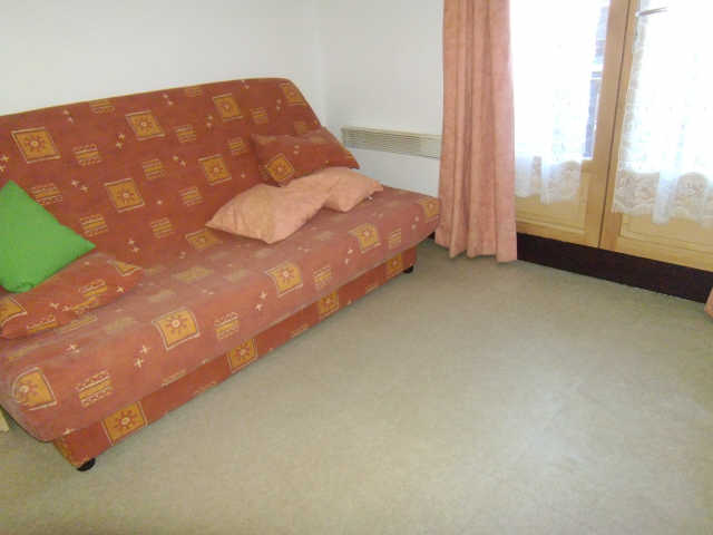 Situé sur le haut de la station et proche des pistes, l’appartement comprend 2 lits superposés dans l’entrée, une salle de bain avec baignoire, un WC indépendant, une cuisine équipée ainsi qu’un séjour avec 2 lits gigognes séparés par une porte coulissante.