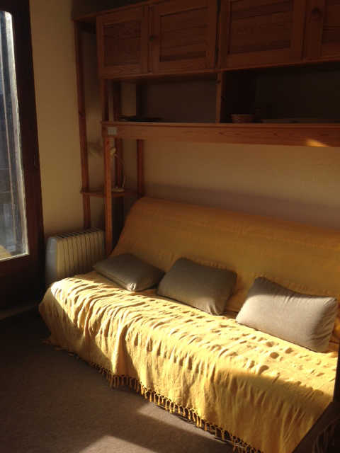 . Un séjour avec lit gigogne pour 2 personnes, et son balcon en SUD avec vue sur les pistes.