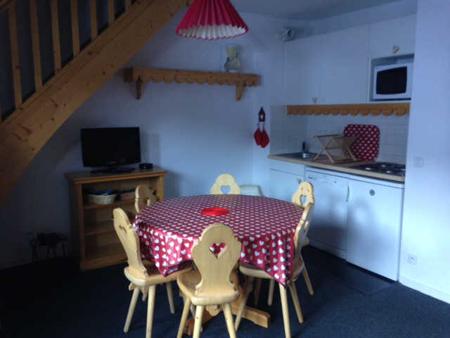 Appartement 3 pièces cabine de 41 m² en rez de chaussée de chalet. Ouverture sur l'exterieur, exposé Nord/Est. Il est composé d'un séjour avec un lit gigogne 2 personnes avec télévision, d'une chambre avec 1 lit 2 places en 140cm et d'une cabine avec 2 lits 1 places superposés. Le coin cuisine est équipé d'un lave vaisselle, d'un réfrigérateur, de 2 plaques de cuisson électriques, d'un four, d'un four à micro-ondes et d'une cafetière électrique. Salle de bain avec baignoire et toilettes indépendants.