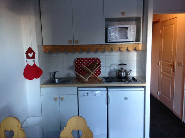 Studio cabine de 27 m² situé au 1er étage avec ascenseur, exposé Sud avec balcon, vue sur le front de neige. Il est composé d'un séjour avec un canapé BZ 2 places et d'une cabine avec 2 lits 1 place superposés. Le coin cuisine est équipé d'un lave vaisselle 12 couverts, d'un réfrigérateur, de 3 plaques de cuisson à induction, d'un four à pyrolyse et d'un micro-ondes. Téléviseur couleur . Salle de bain avec douche, toilettes indépendantes.