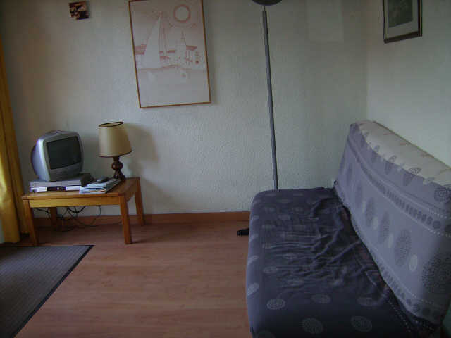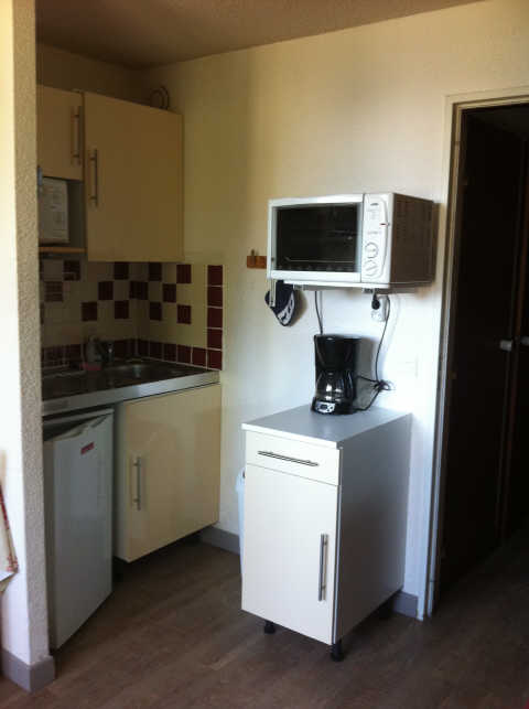 Studio coin nuit de 17m2, au 1er étage avec ascenseur, exposé nord avec balcon.Le séjour comprend un canapé BZ avec télévision, et l'entrée 2 lits 1 place superposés. Le coin cuisine est équipé de deux plaques électriques, un réfrigérateur, un four traditionnel et d'une cafetière électrique.