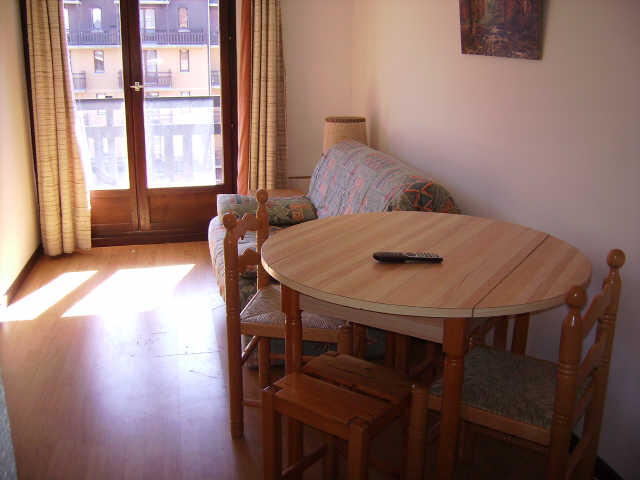Dans résidence pied de pistes T2 de 30 m² pouvant accueillir 4 personnes, une chambre avec 2 lits en 90, un séjour avec lit gigogne, une kitchenette équipée.