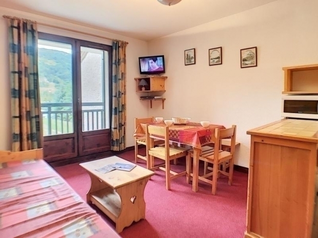 Il est situé au 2ème étage (sans ascenseur) et possède un balcon terasse orienté Sud au pied des pistes face au télécabine Saint Martin 1.
