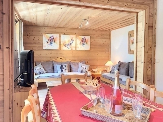 Appartement dans chalet de 65m² pour 6 personnes, entièrement équipé pour votre confort avec accès piste à 200 m ( Piste bleue du Bettex, puis télésiège débrayable 4 places du Bettex pour rejoindre centre station des Menuires en moins de 10 minutes).