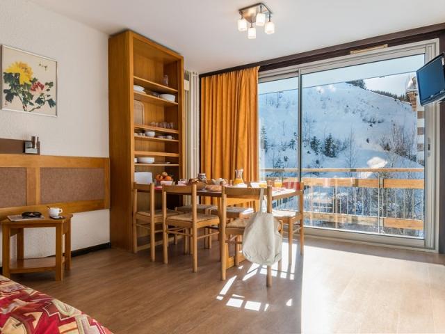 La résidence est située dans le centre de Courchevel 1650, à proximité des pistes et des commerces. Elle propose des studios cabine avec balcon pouvant accueillir jusqu'à 4 personnes.