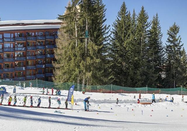 En lisière de forêt et à quelques mètres des pistes, la résidence skis aux pieds est composée d'appartements confortables tout équipés qui profitent d'un panorama sur les paysages enneigés. La station est piétonne et dynamique, face au somptueux Mont Blanc, idéale pour les familles. Les commerces, bars, restaurants et animations d'Arc 1800 se situent à proximité de la résidence. Un magasin Skiset® est situé au sein de la résidence.