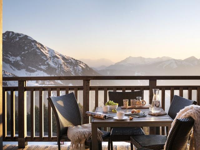 Vue époustouflante sur la vallée et départ skis aux pieds.