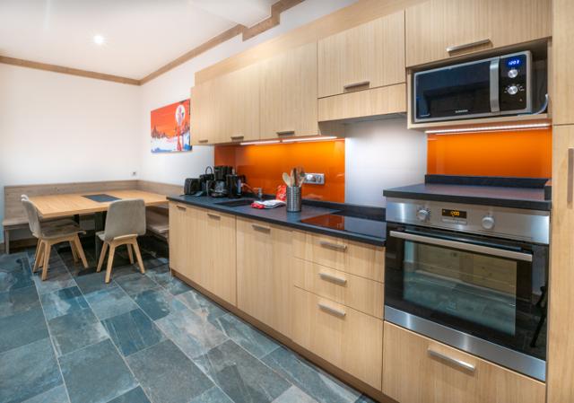 Résidence : Architecture authentique et moderne. Appartements haut-de-gamme de grand confort, avec balcon ou terrasse. A disposition sur place : espace bien-être, accès Wifi, laverie et casiers à skis XXL.