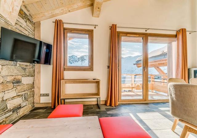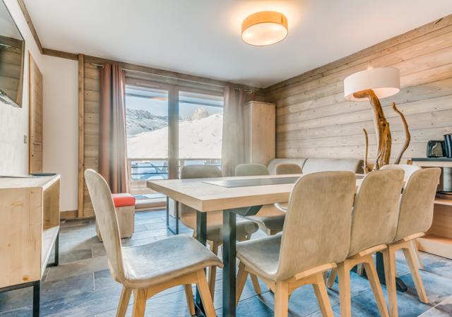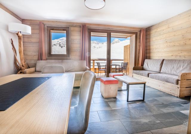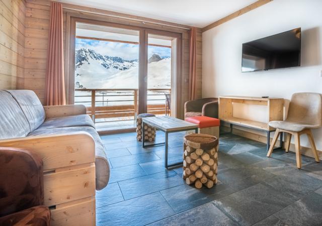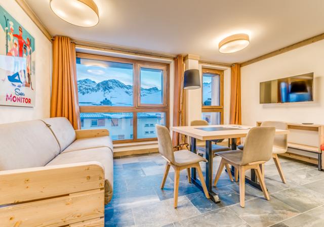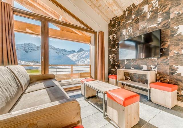 Situation : Au cœur de Tignes Le Lac, à 2100m d'altitude. Commerces et remontées mécaniques facilement accessibles à pied, à 200 mètres maximum.