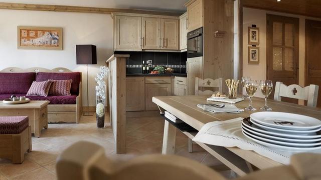 Résidence de prestige : 52 appartements confortables et bien équipés, répartis dans un chalet savoyard en arc de cercle avec vue panoramique. Sur place : piscine intérieure chauffée, bains bouillonnants, saunas, hammams et salle de cardio-training. Soins et massages disponibles en supplément au Spa d’altitude.