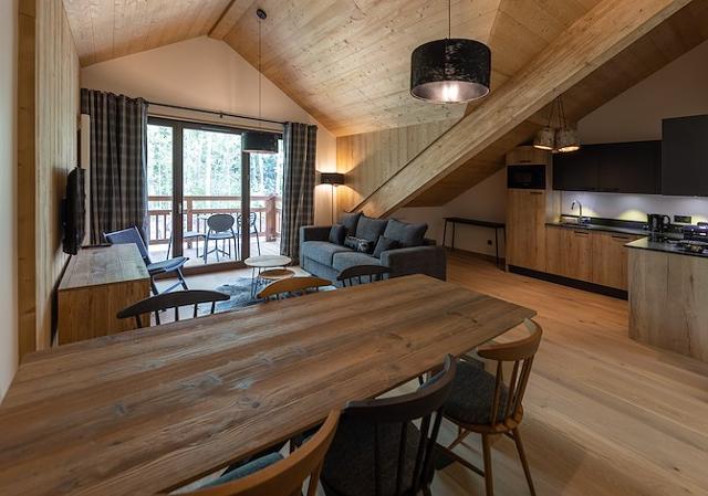 Résidence : Composée de 43 appartements réparties en 2 chalets de 2 à 3 étages. Sur place à disposition : un espace bien-être avec sauna, hammam et cabines de soins (en supplément), un accès Wifi et un parking couvert et extérieur.