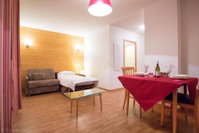 Immeuble mal insonorisé et d'accès difficile avec les bagages, pas d'ascenseur jusqu'à l'appartement. Bon point pour la piscine et le sauna mais Hammam en panne. Gros groupe de polonais durant ma semaine, particulièrement bruyants.