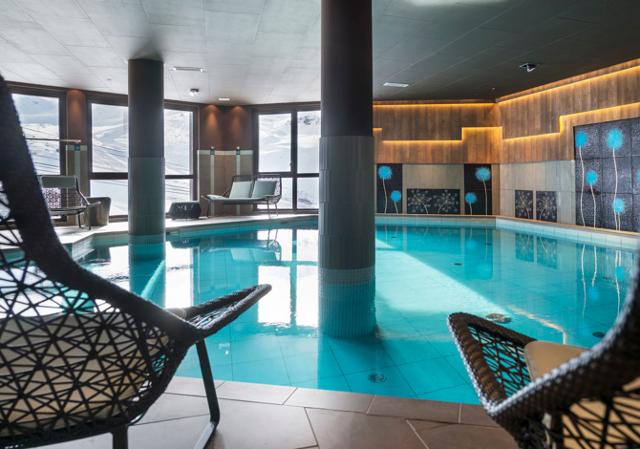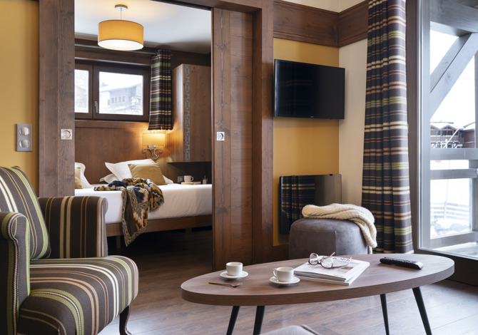 Nous avons particulièrement aimé l'accès skis aux pieds et la situation directement sur les pistes de cette résidence 4*, les équipements et services d’un complexe hôtelier haut de gamme combinés à une ambiance musicale animée autour de son lounge-bar.