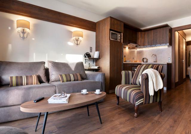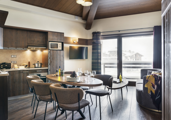 Résidence : Classé 4*, la résidence de prestige offre une vue dégagée et panoramique sur les paysages environnants. Elle propose 38 appartements à la décoration authentique et chaleureuse. Sur place, vous pourrez profiter d'une piscine, sauna, salle de massage et d'un restaurant avec une magnifique terrasse.