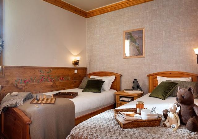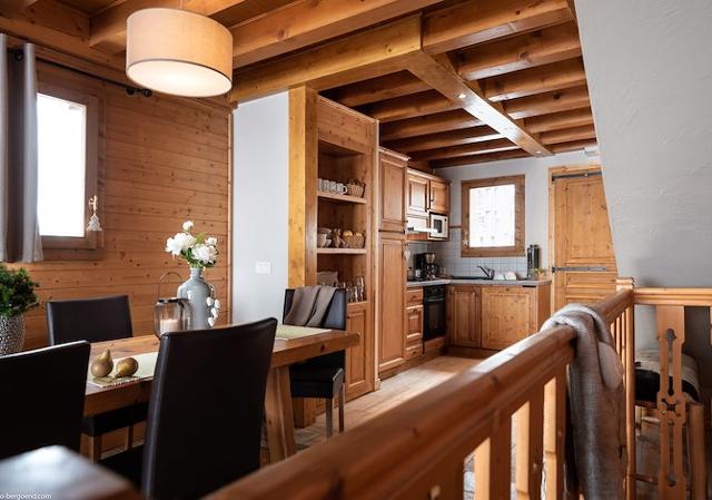 Situation : Située dans la rue du Soleil, à 50 m des pistes de ski. Accès en quelques minutes par une passerelle en bois au centre de la station, ses commerces et loisirs.
