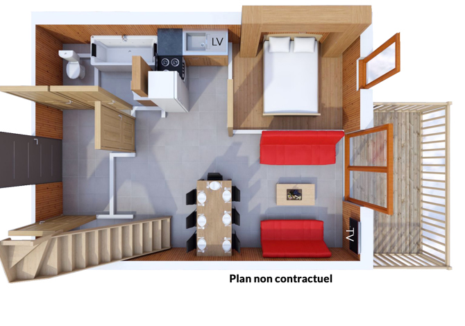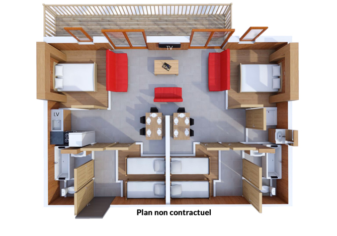 Situation : A 200 mètres des pistes, à proximité des commerces, tout en évitant les axes de grand passage.