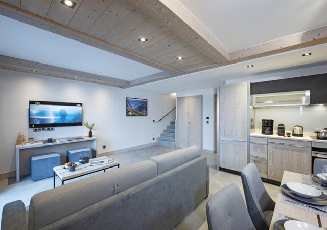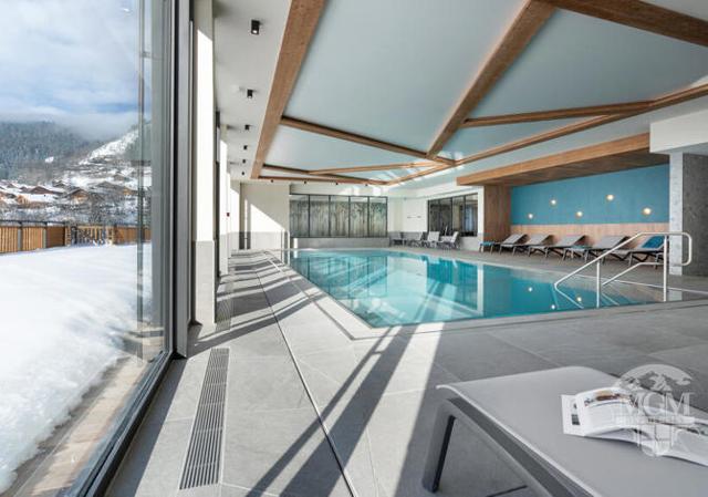 Résidence : Trois chalets modernes et traditionnels accueillent des appartements spacieux avec balcon et Wifi. Sur place : réception avec salon cheminée, local à skis équipé, bagagerie et espace bien-être avec piscine intérieure, sauna, hammam, bain nordique, salle de fitness et spa en accès libre et gratuit.