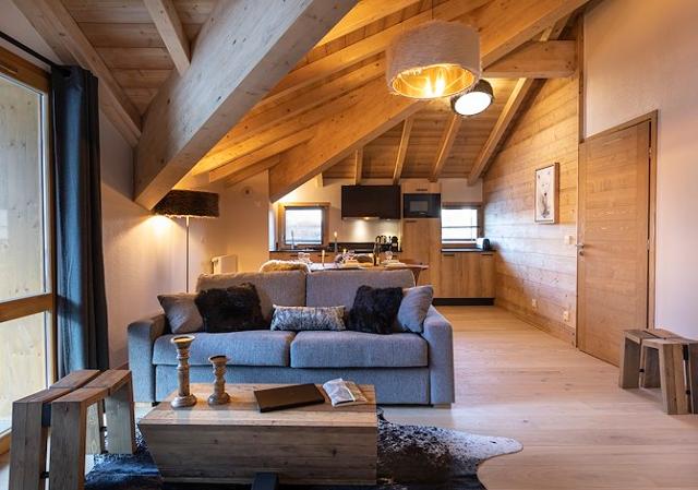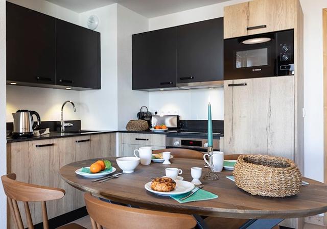 Résidence : La résidence se compose de 24 appartements avec une ambiance montagnarde et dispose d'un ascenseur. Un accès à l'espace bien-être avec une piscine couverte chauffée, un sauna, un hammam, des cabines de soins et de massages est inclus. Un casier à skis et un parking couvert sont également disponibles au sein de la résidence.