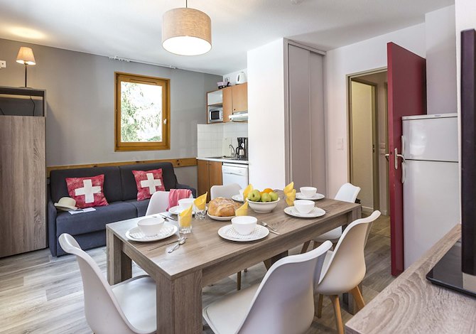 Situation : A seulement 50 m des remontées mécaniques, 1,5 km m du cœur du village et 600 m des premiers commerces. Navettes gratuites pour rejoindre le village et le restaurant de la résidence voisine (L’Orée des Pistes). La résidence permet de rejoindre facilement, ski au pieds, une piste verte juste derrière votre hébergement.