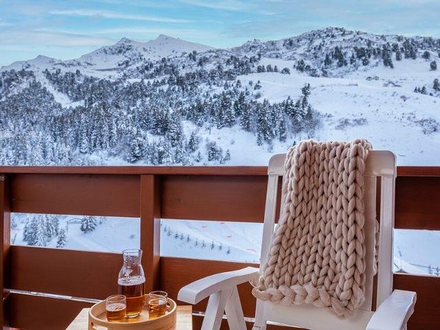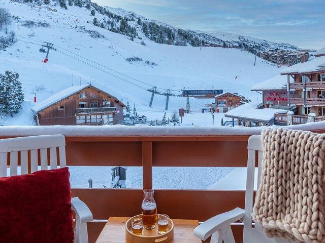 Résidence de style savoyard avec une belle vue sur le domaine des 3 Vallées.