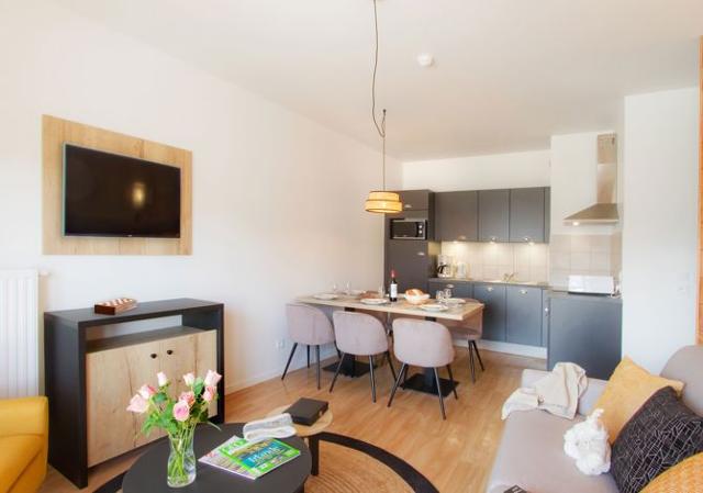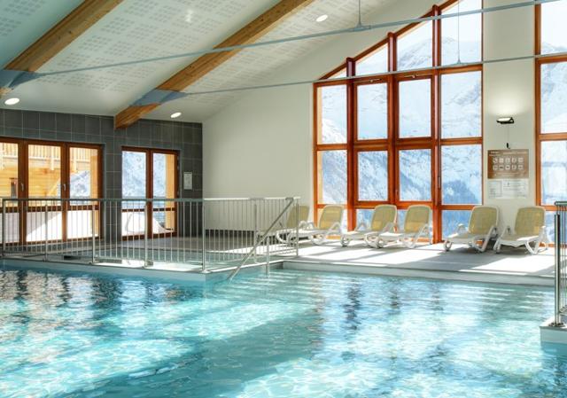 Résidence : Propose des appartements confortables et bien équipés avec balcon ou terrasse. Sur place à disposition : piscine couverte chauffée avec pataugeoire et bain à remous.