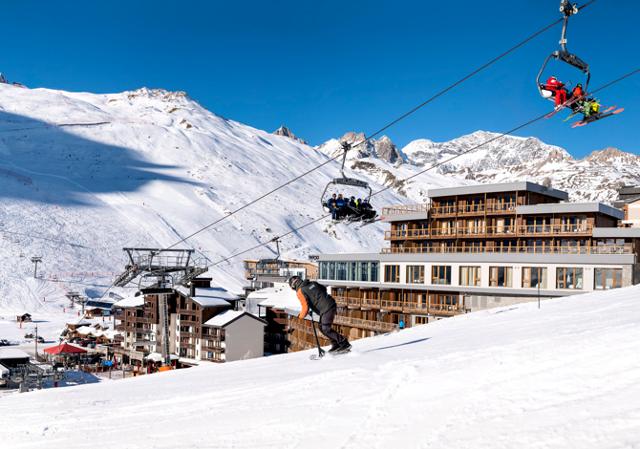 Situation : Situé dans le quartier de Tignes Val Claret, à 2 150 mètres d'altitude. Un accès direct aux pistes de ski est disponible.