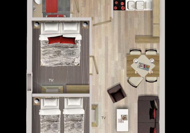 Situation : A Val Thorens, dans un environnement calme à 2300 m d'altitude avec accès direct sur les pistes. Commerces et ESF à proximité. Bourg St Maurice à 38 km et Genève à 200 km environ.