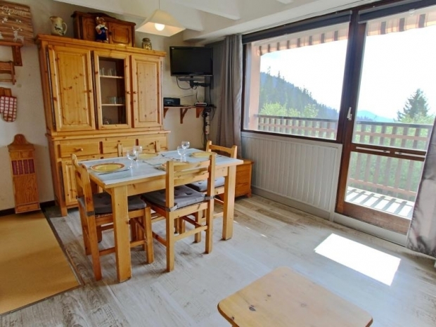 Navette gratuite en bas de l’immeuble desservant la station (Le Recoin et Roche Béranger). Casier à skis.