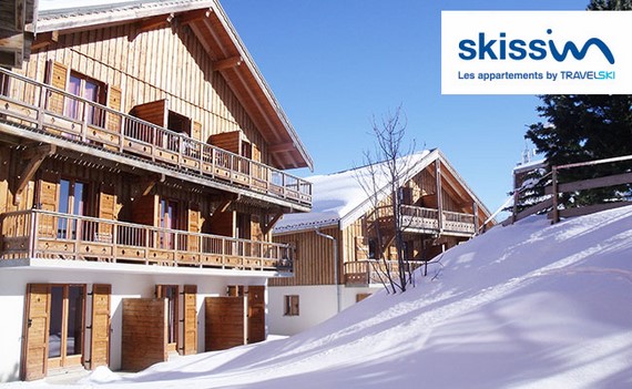 Appartements Skissim : 97 appartements répartis dans 17 chalets d'architecture savoyarde. Sur place à disposition : piscine couverte chauffée, sauna et salle de gym.