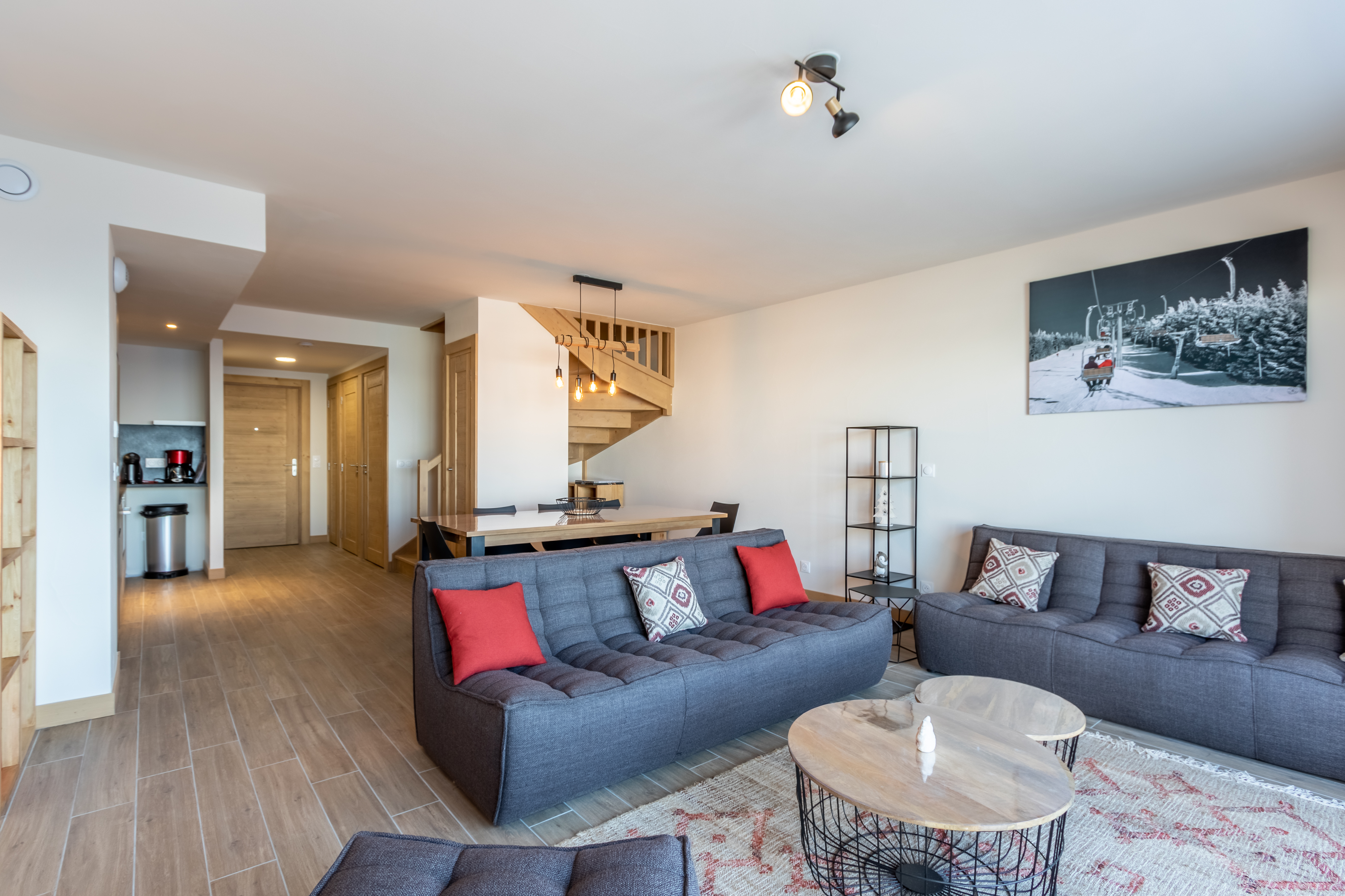 Duplex: Agréable et confortable. Avec une terrasse, WiFi, un lave-linge, un sèche-linge, un lave-vaisselle, des casiers à skis.