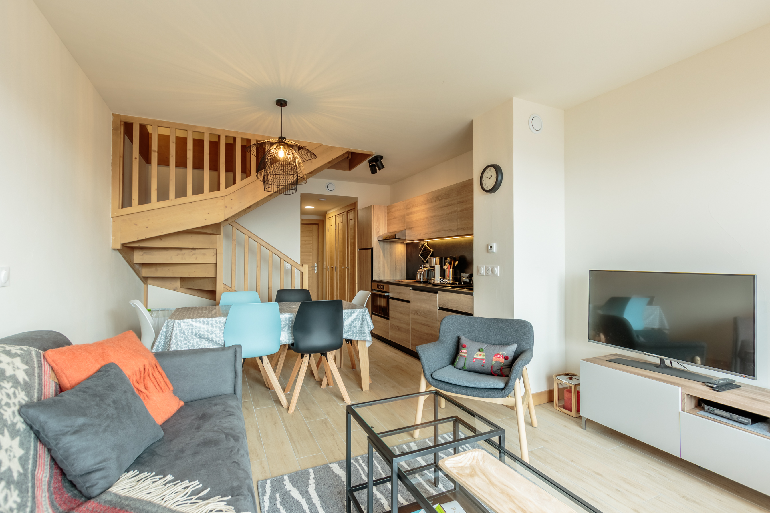 Agréable et confortable, cet duplex premium se compose d'un séjour, de 2 chambres, de 3 salles de bain répartis en 5 étages avec ascenseur.