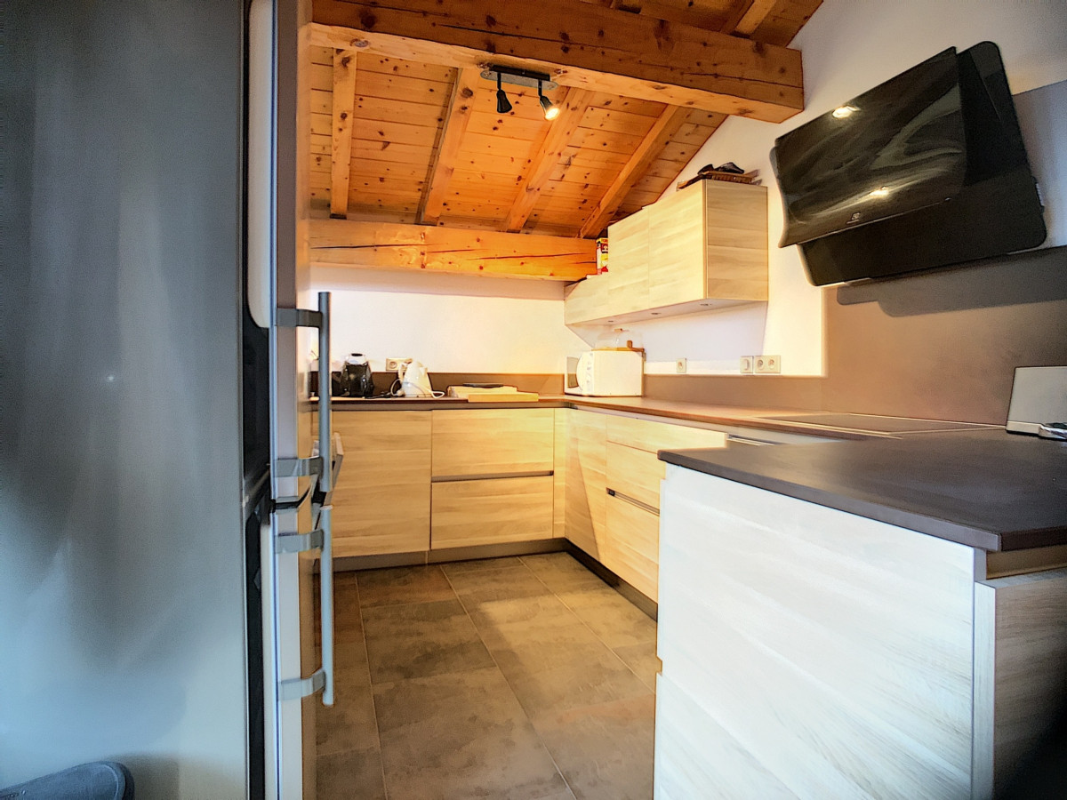 Séjour / cuisine : Plaques induction, four électrique, réfrigérateur, cafetière électrique, canapé lit, TV, four micro-ondes, lave-vaisselle.