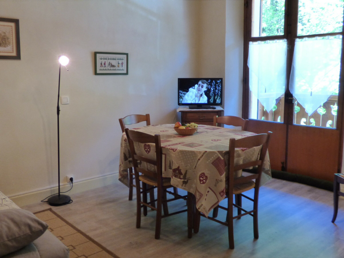 - Séjour avec un canapé convertible style "Clic-clac" (140 x 190), télévision - accès balcon Sud/Est