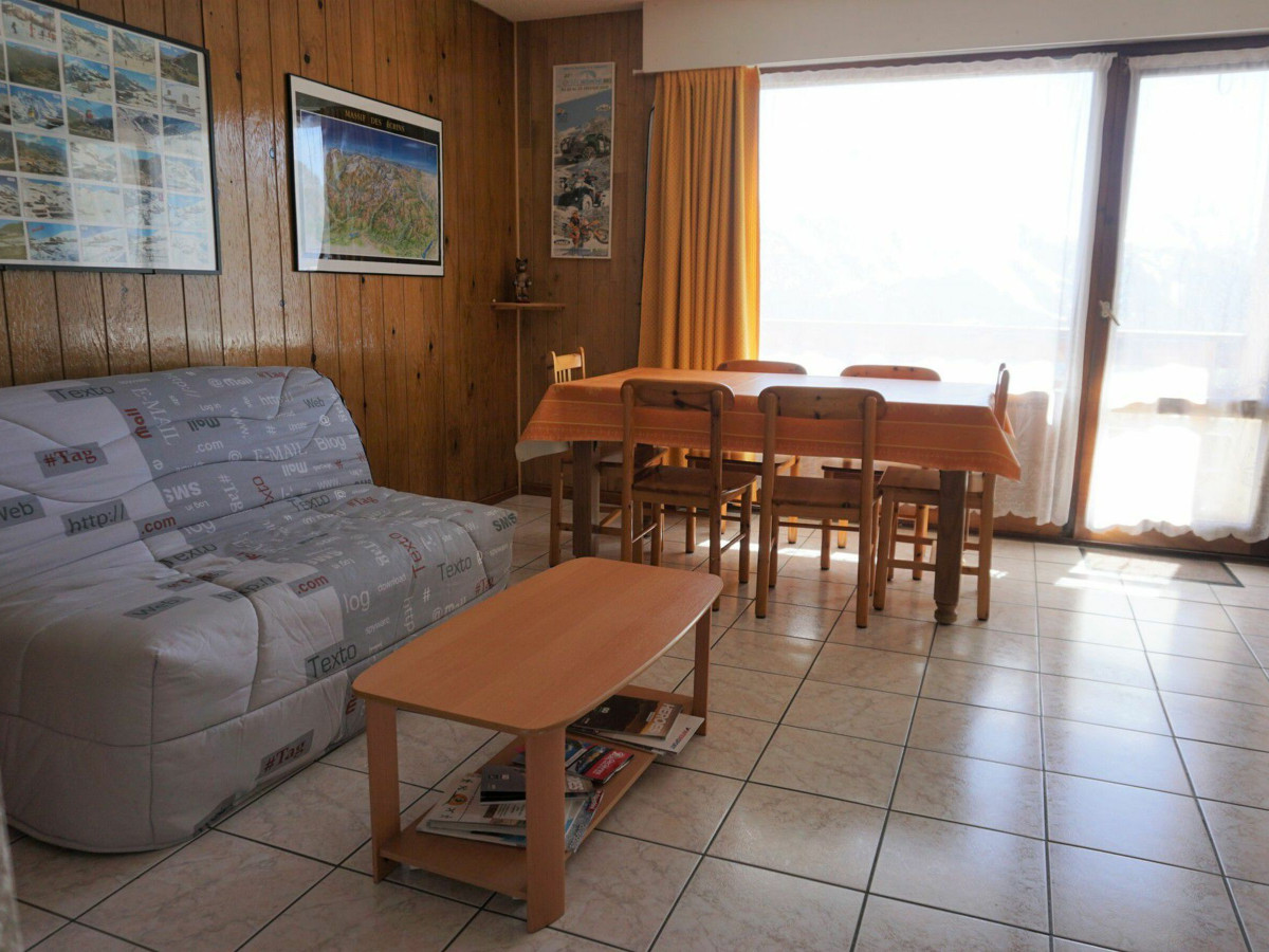 Studio + box 38 m² environ, situé au RDC ; balcon exposition Sud avec vue sur la station et la vallée.