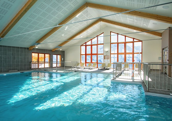 Résidence : Propose des appartements confortables et bien équipés avec balcon ou terrasse. Sur place à disposition : piscine couverte chauffée avec pataugeoire et bain à remous.