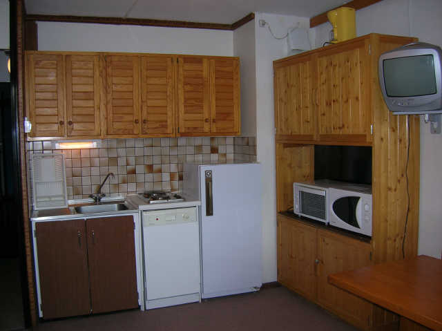 - coin cuisine ouverte sur le séjour avec réfrigérateur, 2 plaques électriques, four, lave vaisselle