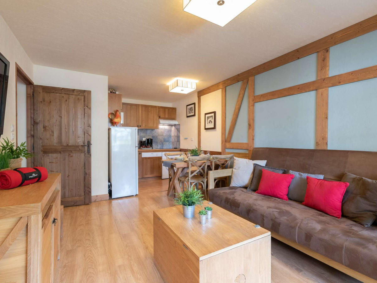 D'un grand séjour avec un 1 canapé-lit 2 places et une TV écran plat.