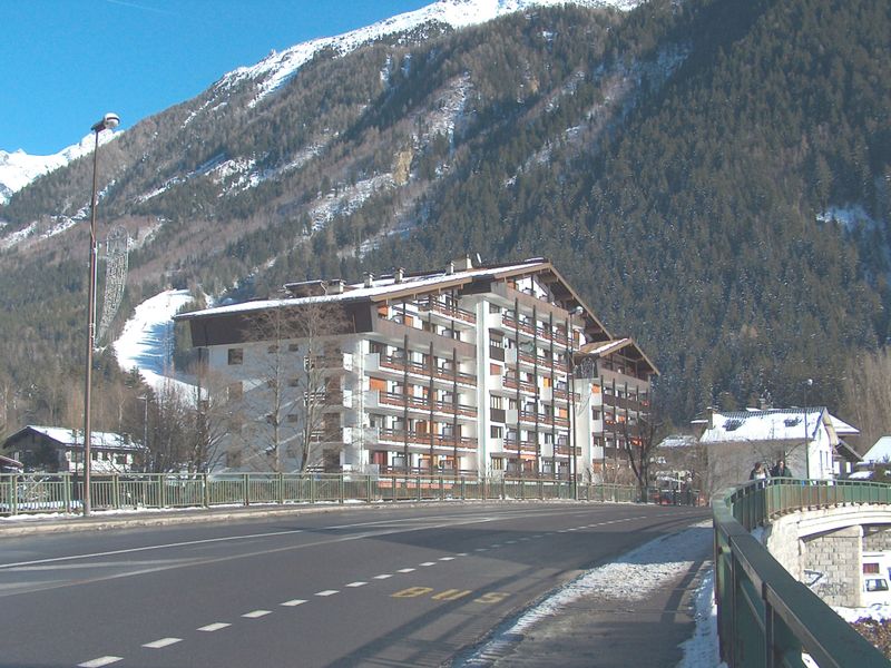 Quartier résidentiel, calme et verdoyant, à 700m du centre de Chamonix, proche des terrains de tennis et des pistes de ski de fond.