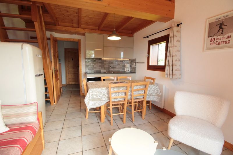 Situation : 50 m d'un arrêt navette, 600 m environ du rassemblement écoles de ski, 10 m environ du centre des Carroz, 600 m environ des pistes les plus proches, 600 m environ du télécabine de Kedeuze Casier à skis, Local à skis