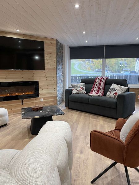 Résidence Le Boussolenc - Studio équipé 4 couchages, Exposé Nord - Centre station aux pieds des pistes - Box à skis - Coin montagne dans l'entrée avec 2 lits superposés et canapé BZ dans la pièce principale. Possibilité de parking en option. Ménage de fin de séjour non compris. Lits superposés déconseillés aux enfants de -6 ans.