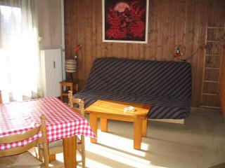 Route des Perchets situé à 1500 m du centre de Megève et commerces. Résidence chalet édifiée sur les hauteurs de Megève, à 800 mètres du téléphérique de Rochebrune, 650 mètres des premiers téléskis, elle bénéficie d'une situation au calme et d'une vue exceptionnelle. Studio 4 personnes de 25 m2, séjour avec kitchenette équipée de plaques chauffantes, four et micro-ondes, LV 4 couverts et réfrigérateur. 2 lits simples dans séjour, 2 lits superposés dans l'entrée. TV écran plat. Salle de bains avec WC. Exposition sud ouest, belle vue sur Rochebrune et le Val d'Arly. Casier à ski.