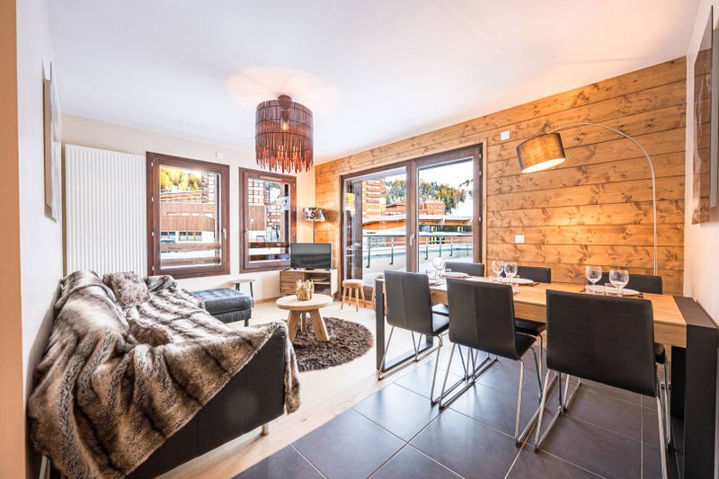 Situation : Au pied des pistes, l’accès au domaine Paradiski se fait skis aux pieds. Les commerces et le centre de la station sont à 350 mètres, et l’ESF à 700 mètres.