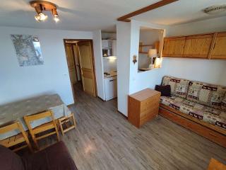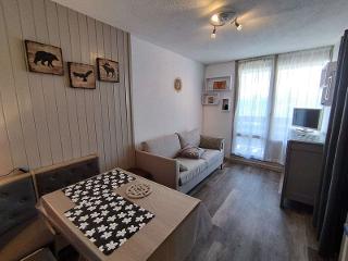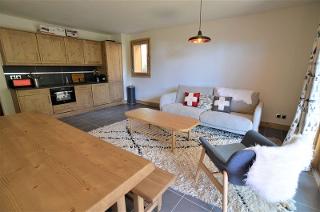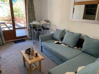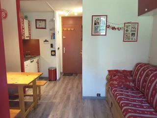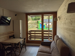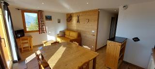 Appartement triplex de 45m² environ, composé d'un séjour, donnant sur un balcon orienté ouest avec une très belle vue sur la vallée. Une kitchennette ouverte sur le séjour avec canapé convertible. Kitchenette avec plaques vitrocéramique, un four traditionnel, un micro onde, un frigo avec freezer, un lave vaisselle, une cafetière filtre, une bouilloire et un grille pain.