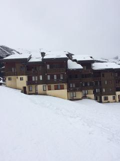 L'appartement: Agréable et lumineux, très facile d'accès. Dans le séjour divisible par cloison mobile se trouve 2 banquettes lits simples. (2 lits neufs) et un canapé lit clic clac 140. Cuisine indépendante équipée de lave vaisselle, four, plaques électriques. Salle de Bains et WC indépendants. Terrasse exposition Ouest avec vue sur les pistes. Casier à skis dans la résidence.